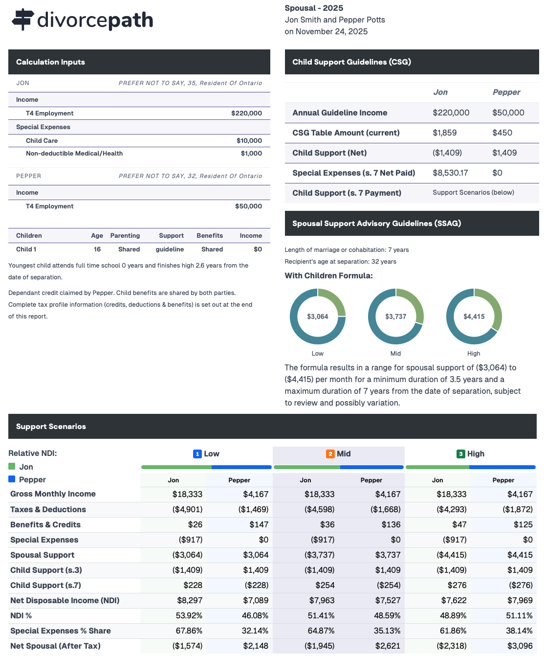 If you are a family lawyer or professional, Divorcepath makes it easy to explore and explain different support scenarios to your clients, and detailed PDF reports can strengthen your submissions in court or at mediation.