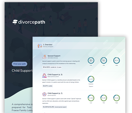 Help take the emotion out of post-divorce financial planning by understanding the full financial picture. Divorcepath's support calculator breaks down the numbers in a way that is easy to understand.